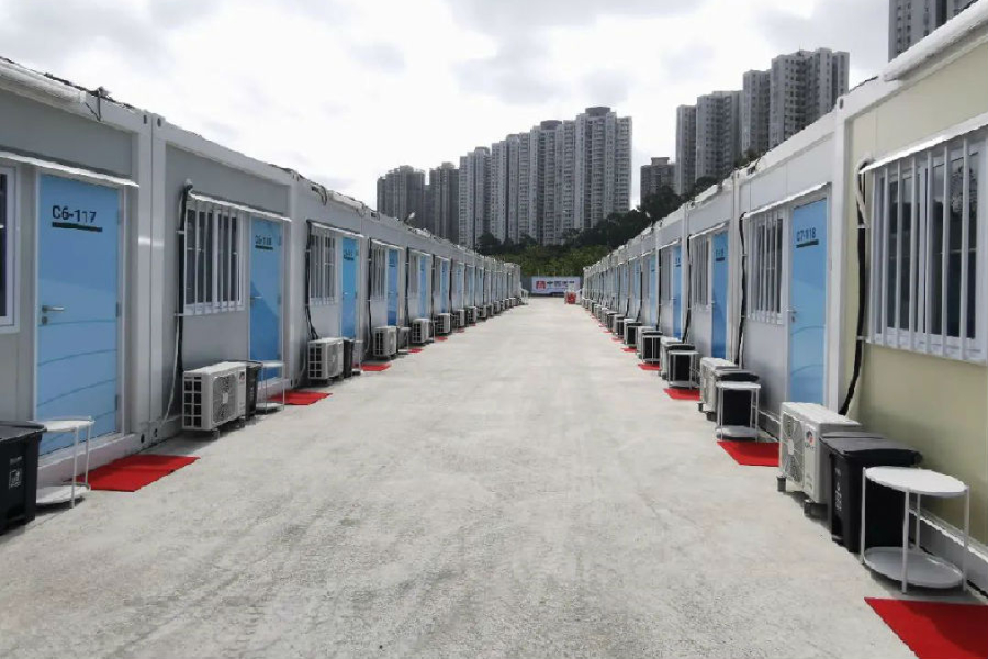 3月13日上午,第四个由中央援建的社区隔离设施,香港粉岭马适路社区隔离设施交付使用。