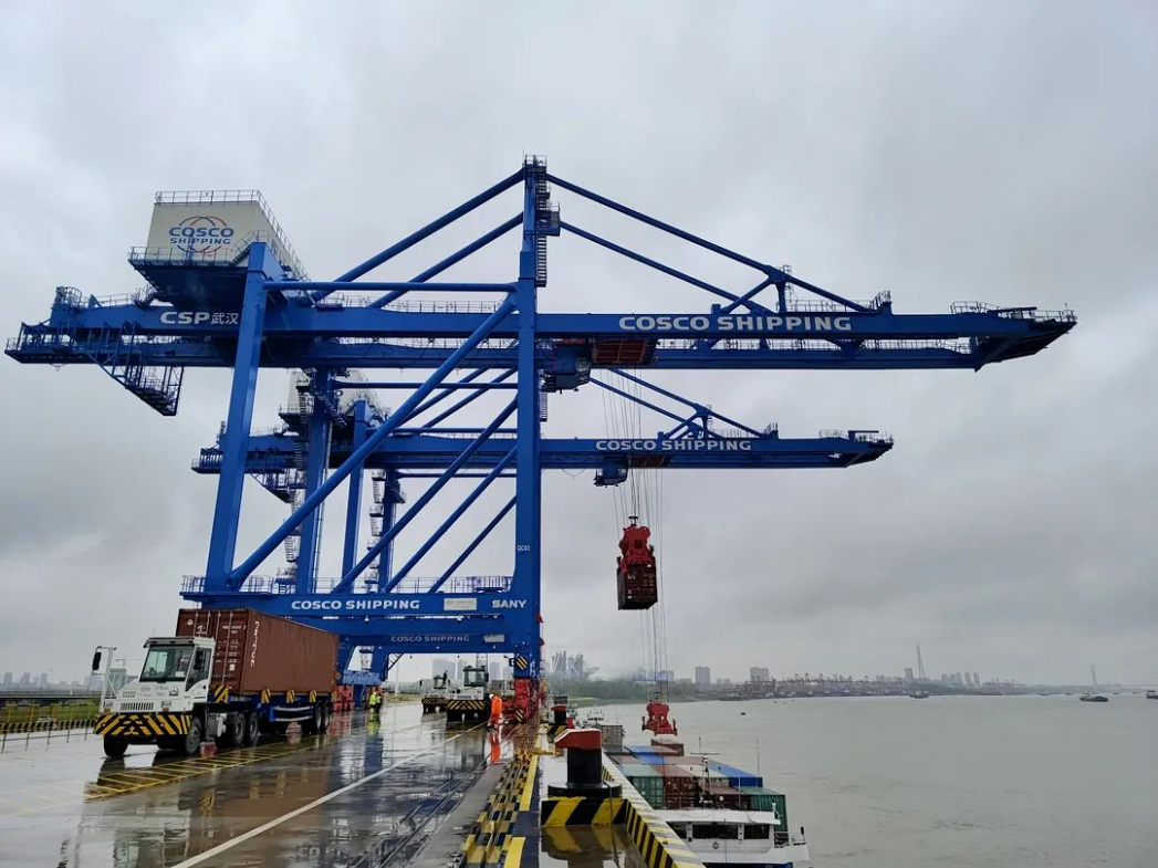 近日,随着力洲国运轮在武汉阳逻国际港水铁联运二期项目靠泊作业,中远海运港口武汉码头自取得外贸资质以来,首次实现内外贸箱同船作业,标志着内河首个智慧港口正式开启外贸业务。