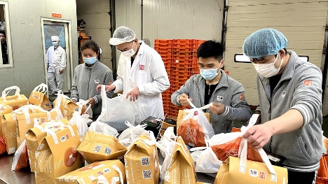 华润五丰旗下上海五丰,以稳住上海市民的菜篮子,切实保障鲜肉产品供应为重点,3月份鲜肉供应量近千吨,确保了各菜场、超市及电商平台等渠道的“五丰”鲜肉供应。同时,上海五丰对自营线下渠道和线上渠道进行价格管控、有针对性地建立保供产品目录,积极推行社区团购,确保疫情期间消费者足不出户便可订购到放心平价鲜肉。据统计,3月份上海五丰社区团购线上支付3.9万多件,为政府、超市、平台定制市民保供鲜肉产品发货超10万份。