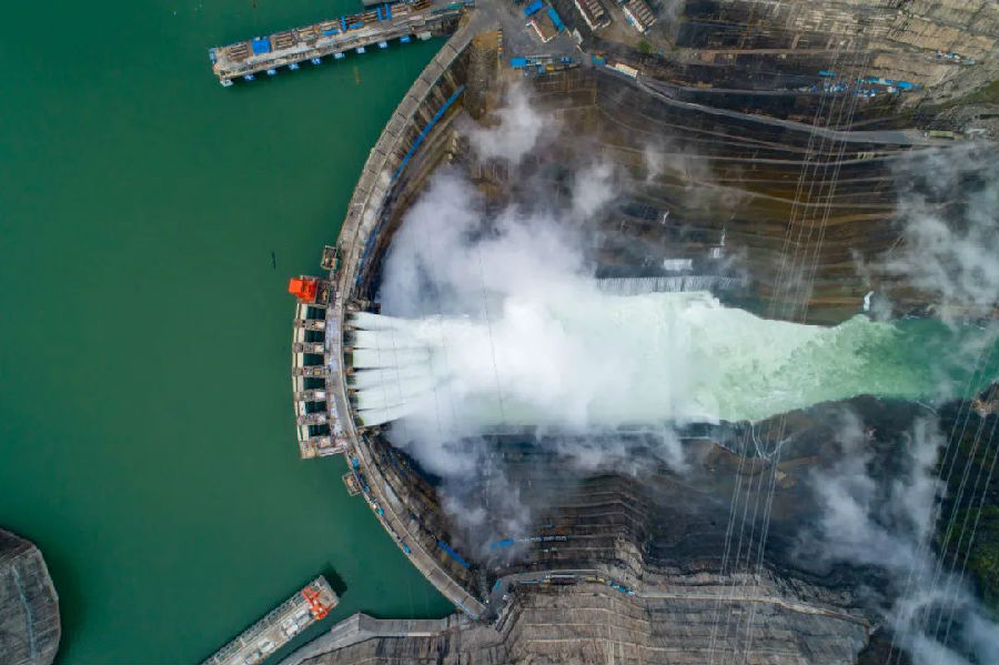 2021年6月16日,举世瞩目的乌东德水电站实现全部12台85万千瓦机组投产发电目标。这项三峡集团精品工程创造了世界最薄300米级特高拱坝等8项“世界第一”;创下全坝采用低热水泥混凝土等15项“全球首次”;攻克大体积混凝土温控防裂、超大规模地下洞室群开挖、800兆帕高强钢焊接等一系列世界级难题,为引领世界水电工程建设树立了新标杆。