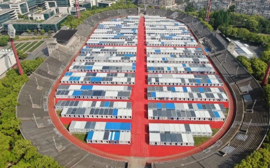 5月2日深夜,中交援建的上海首个大型隔离点—杨浦江湾体育场隔离点历经5天5夜鏖战后顺利完成竣工交付,为抗疫提供隔离用房1100间、床位1800张。