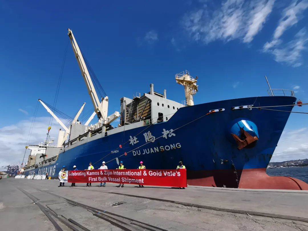中远海运非洲公司深入在非矿企,与客户积极探讨开展“集改散”工作,2月18日顺利签订了紫金矿业与中远海运特运杜鹃松轮的首载1万吨袋铜精矿租船运输协议,从南非德班装货到国内防城港卸货。4月1日,紫金矿业1万吨袋铜精矿顺利装上杜鹃松轮,启程运往国内。
