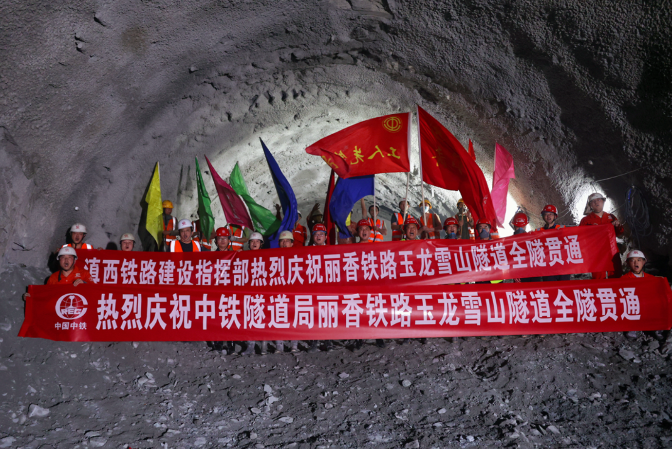 经过1000多名建设者八年奋战,5月5日上午,中国中铁旗下中铁二院勘察设计、中铁隧道局承建的丽江至香格里拉铁路最长隧道玉龙雪山隧道贯通,至此,丽香铁路全线20座隧道已贯通19座。