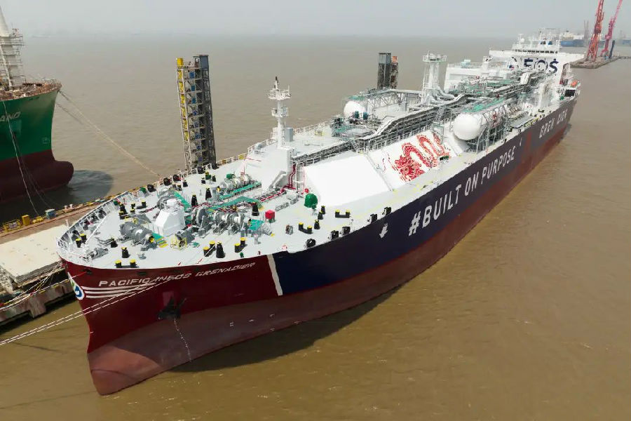 5月16日,中国船舶集团旗下江南造船为浦银租赁和山东海洋集团下属太平洋气体船(香港)控股有限公司(PACIFIC GAS)建造的99000立方米B型舱超大型乙烷运输船(VLEC)“PACIFIC INEOSGRENADIER”号交付。该船是江南造船4月23日开始逐步复工复产以来交付的第一艘船,也是今年3月上海疫情以来长兴镇交付的第一艘船。