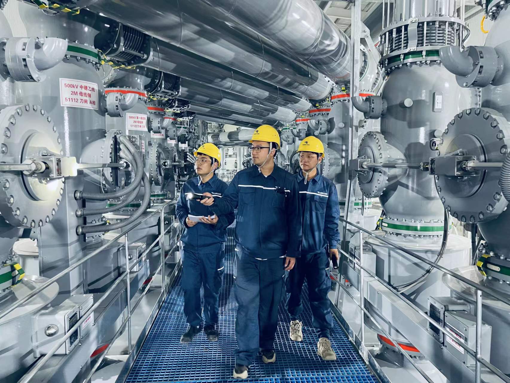 图为南方电网广东广州供电局工作人员在巡视工程开关和刀闸设备