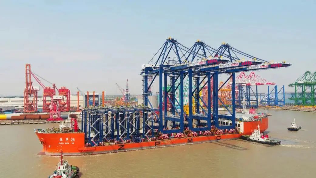 近日,中交集团所属中国港湾投资建设运营,振华重工设计建造的尼日利亚莱基码头首批3台岸桥和10台轮胎吊从振华重工上海崇明岛长兴分公司码头发运。