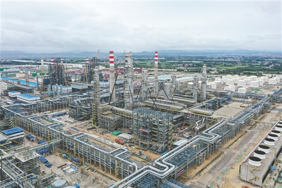 图为在广东石化炼化一体化项目中,目前全球单套生产能力最大的芳烃装置——年260万吨芳烃联合装置正在紧锣密鼓建设。