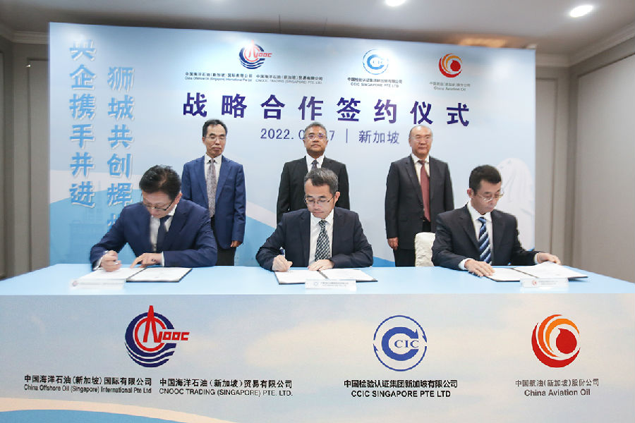 6月17日,中国中检新加坡公司分别与中国航油(新加坡)有限公司、中国海洋石油(新加坡)国际有限公司在新加坡签署了战略合作协议。