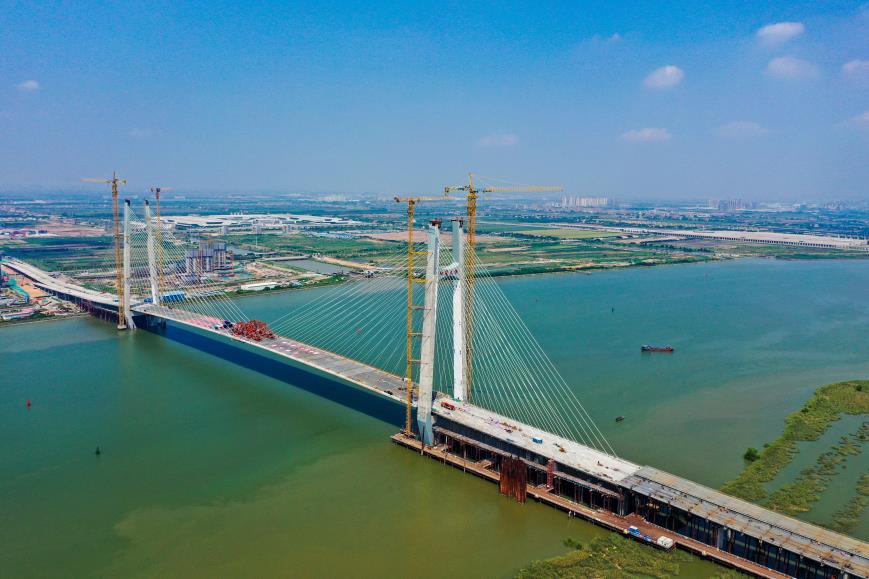 红莲大桥全长1782米,主桥长912米,采用双塔双索面混合梁斜拉桥型,主塔高180米,飞跨珠江水系龙穴南水道的主桥跨度达580米,是目前我国同类型多功能斜拉桥的最大跨度。