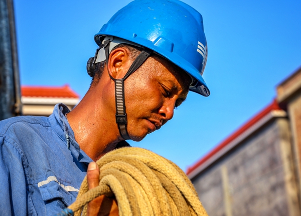 南方电网广东肇庆鼎湖供电局现场施工人员高温下开展作业