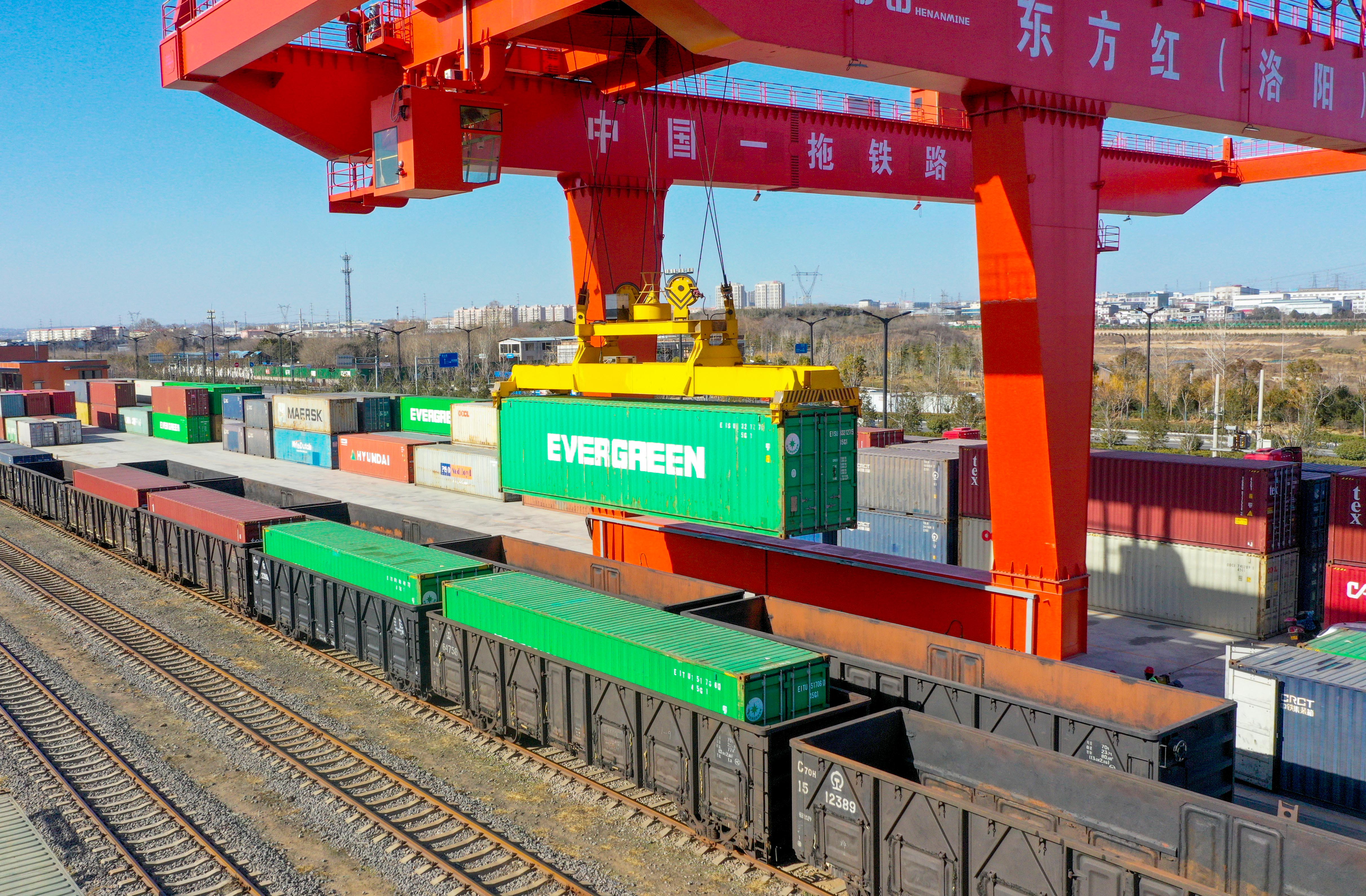 目前,东方红(洛阳)国际陆港已常态化开行“洛阳-中亚”“洛阳-俄罗斯”去程国际班列、“洛阳-宁波”“洛阳--青岛”铁海联运班列,以及数条从洛阳出发到达国内各个站点的内贸铁路运输线路,其中,中欧班列(中豫号)中亚线路以平均每周一趟的速度保持正常发运。