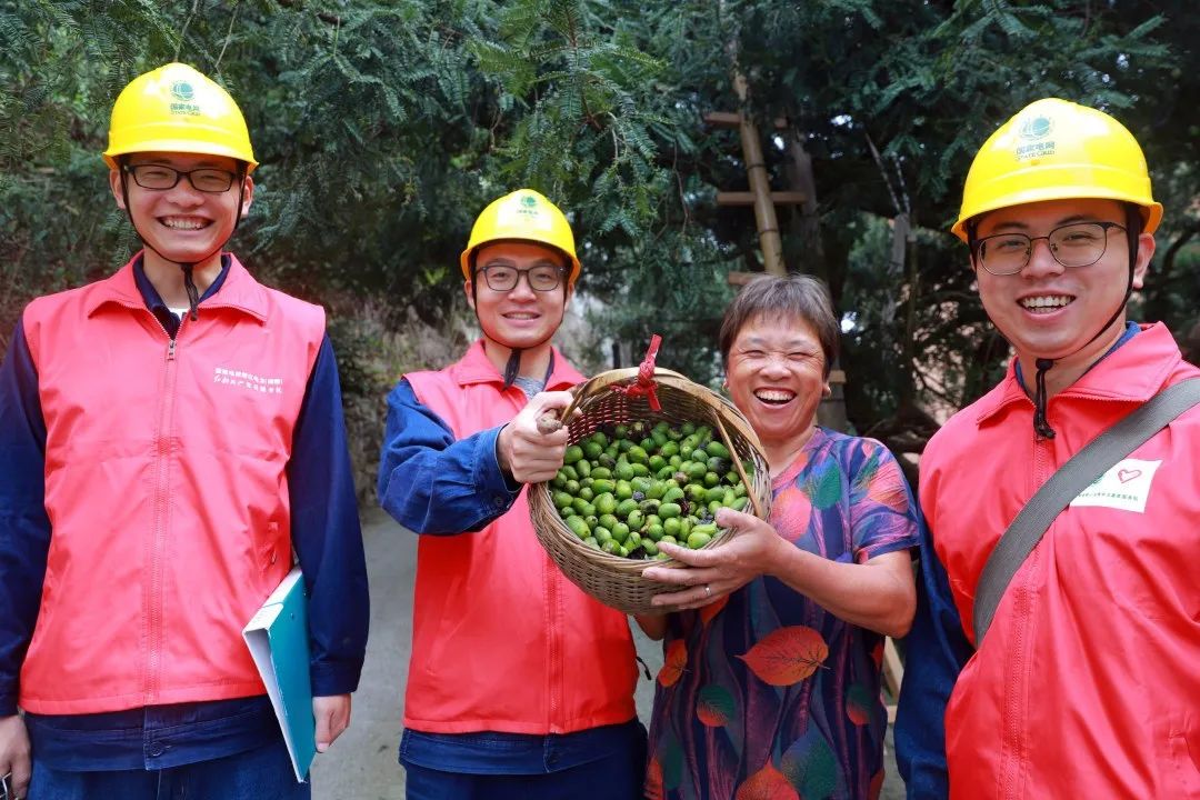 国家电网浙江电力(诸暨)红船共产党员服务队来到赵家镇里宣村服务香榧种植户,确保丰收季用电无忧。