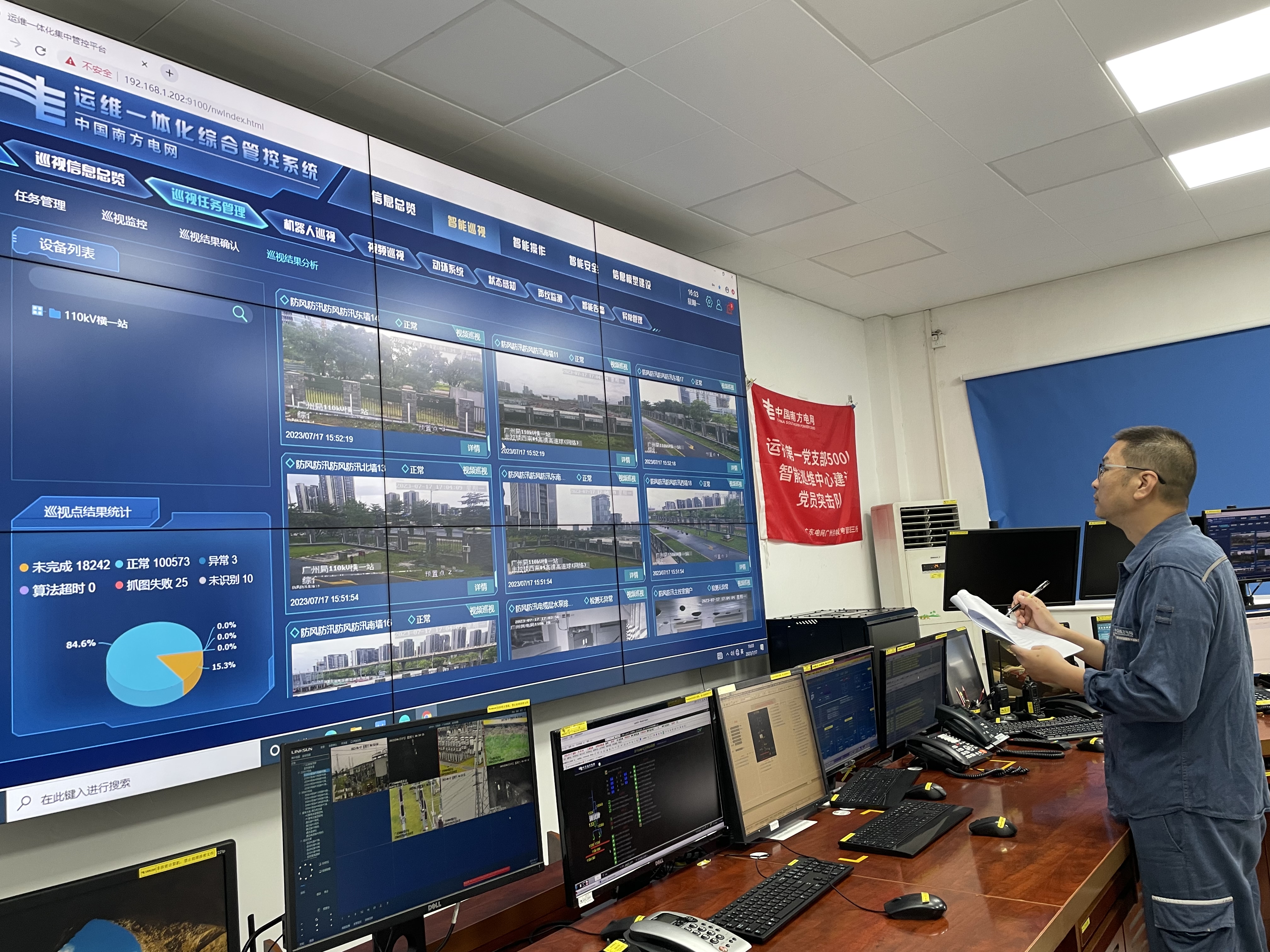 南方电网广东广州供电局狮洋巡维中心在远程监测设备防汛状态。