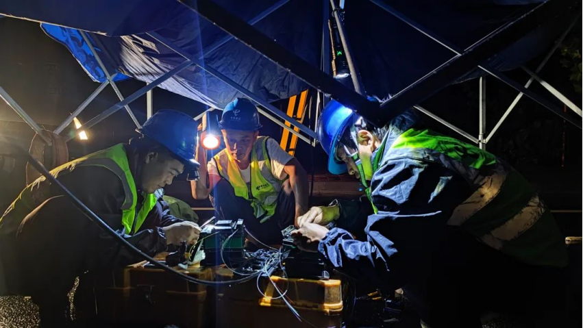 不论是在山脚下的基站,还是在几十米高屋顶的户外基站,维护人员在小心脚下、防滑防落水的同时对相关故障进行着全方位的紧急抢修。