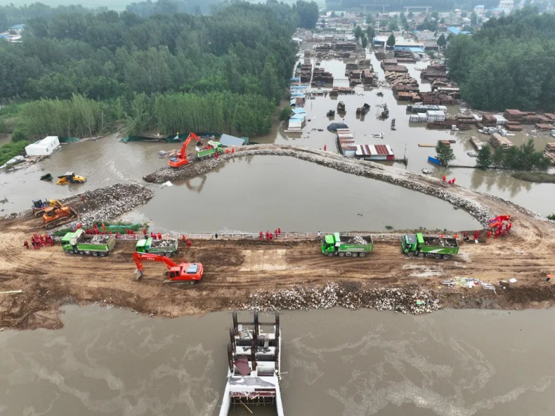 根据应鹤壁市应急局请求,中国安能鹤壁救援基地出动11名救援骨干,携带自动砂袋打包机、大功率抽排水车、挖掘机等共计7台套大型专业救援设备,于8月1日13时到达任务区,担负决口封堵、堤坝加高加固以及装填砂袋任务。