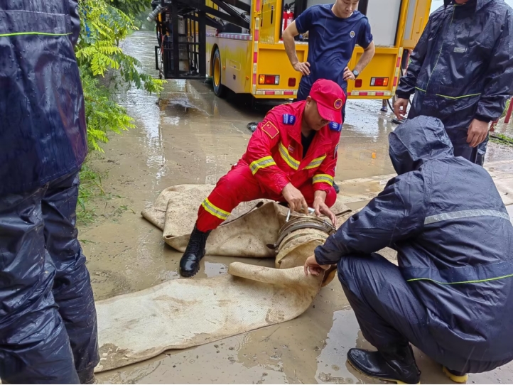 受连日暴雨影响,雄安新区多地出现城市内涝险情。接应急管理部门调度通知,中国安能唐山救援基地雄安救援大队12名救援队员,携带大型抽排水车等6台套大型救援装备,分别在容东区、启动区同时担负内涝排水任务。