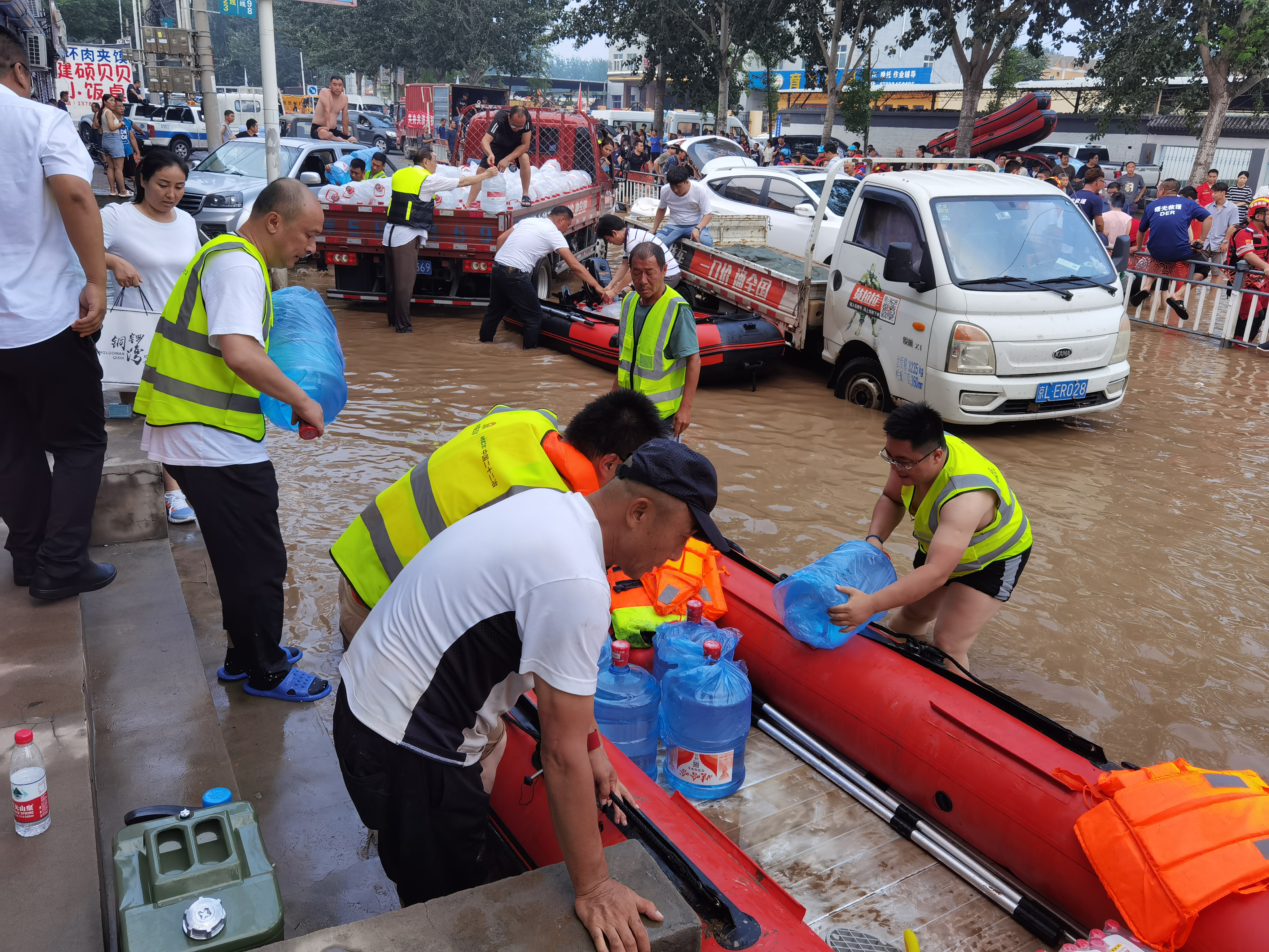 面对河北省涿州市因短时间内强降水导致的城市内河道行洪和城市内涝风险加剧形势,中冶集团所属中国二十二冶路桥公司涿州雨污分流项目的40名员工一方面组织自救,一方面积极协助政府帮助周边群众进行安全转移。该公司总部第一时间从唐山派出党员救援突击队运送皮划艇和生活物资奔赴受灾现场,15名突击队员不眠不休地驾驶皮筏艇多次往返,解救当地被困居民12人,运送发电机3台、矿泉水20箱、方便面20箱、自热米饭20箱、火腿肠5箱、榨菜3箱、面包10箱、充电宝100个等生活必需物资,并为附近200多名居民免费发放饮用水。