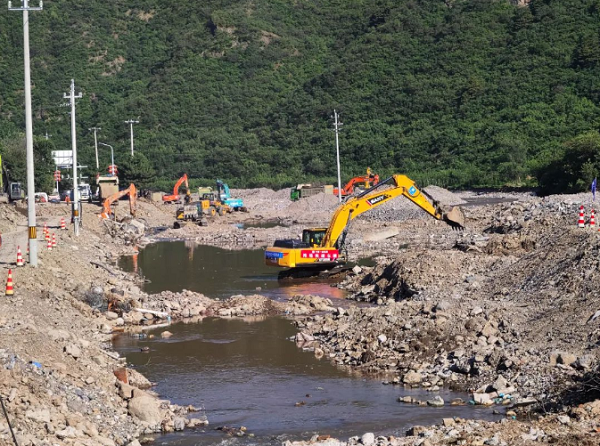 在北京市门头沟区,中建一局积极支援永定镇,调集82名人员进行永定河河道清理,出动挖掘机33台、铲车4台、油锯2台,8月15日完成清理里程3000米,8月18日完成全部清理作业。