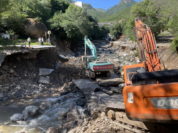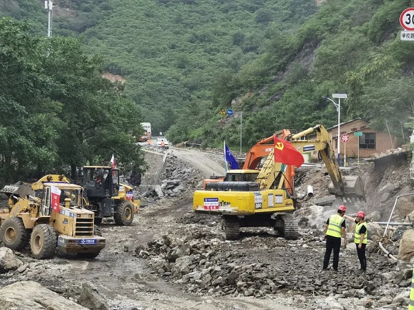 8月3日,中交路建接到门头沟区妙峰山镇水峪嘴村受洪水和泥石流冲击的险情,立即成立抢险救援工作组,调派机械设备18台套,保障车辆4辆,作业人员和管理人员106人奔赴现场救援。截至8月8日下午,水峪嘴村3条主干道全部疏通,23条支路全部疏通;就地利用土方修复5处水毁路段;恢复7处排水暗涵通水,转移103台受损车辆,门头沟区水峪嘴村抢险救援工作全部完成,为受灾村民返回家园创造了条件。