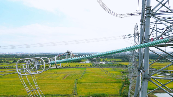 国网上海超高压公司线路检修人员在1000千伏特高压吴塘线开展带电作业消缺工作。