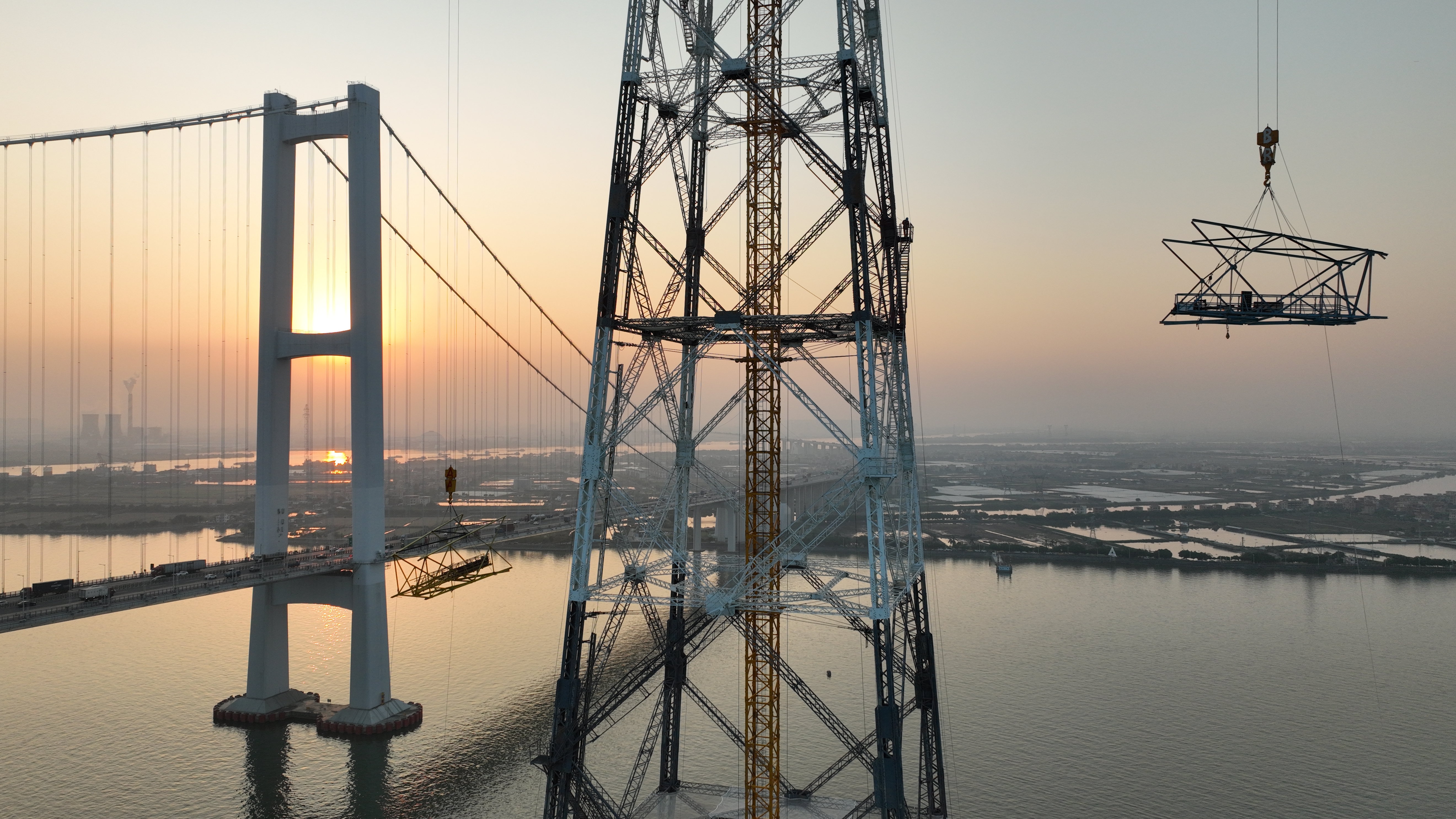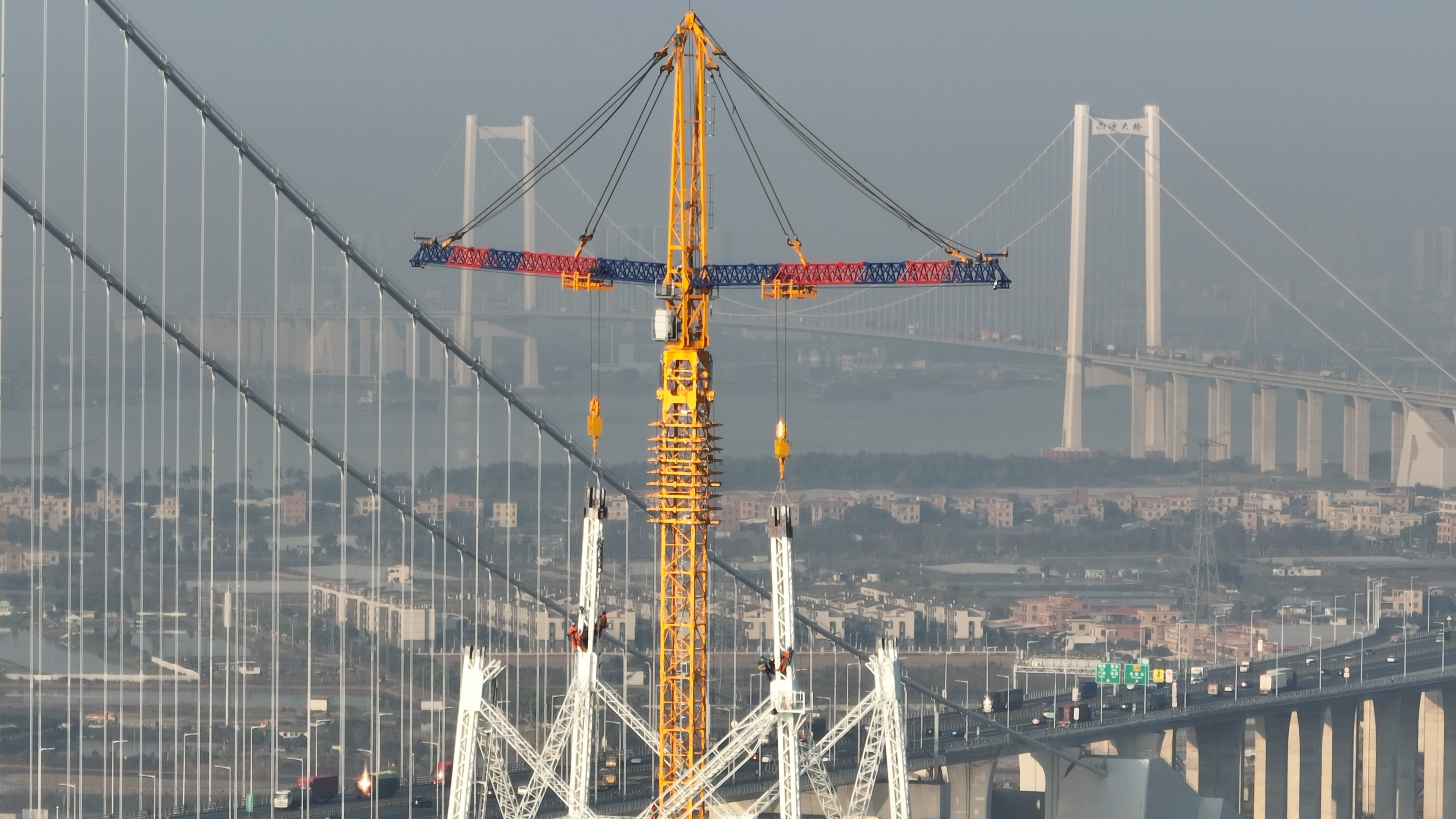 狮子洋位于珠江三角洲中心,南沙大桥距离施工位置不到240米。“本来部分老旧铁塔用整基倒塔法来拆非常快捷简便,但考虑到周围有大片经济作物及厂房,我们没法用传统的外拉线抱杆来拆旧塔,附近松软的地质也决定了我们无法用500吨的履带吊车来进行施工。”南方电网广东广州供电局项目管理中心项目经理徐敏在一旁解释。