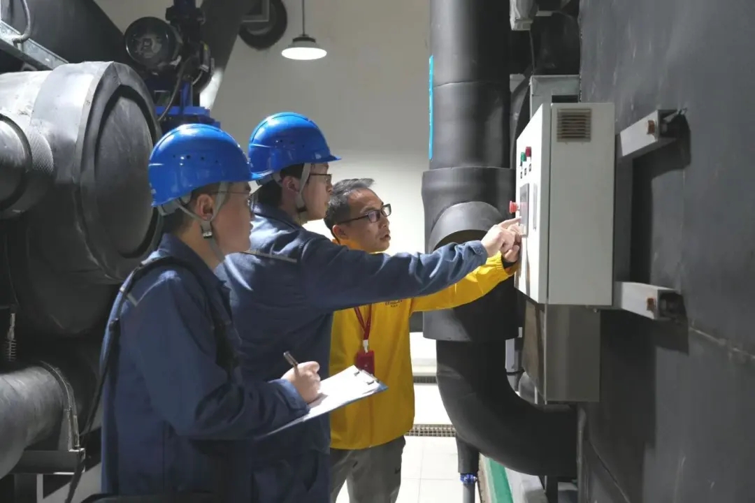 南方电网广东佛山顺德供电局工作人员检查天虹坚果工厂冰蓄冷系统运行情况,指导用户科学用电