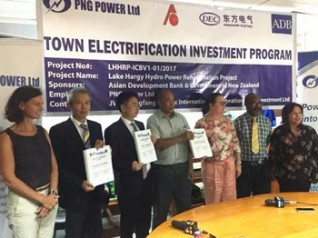 近日,巴布亚新几内亚哈吉湖水电站项目合同签约仪式在巴新国家电力公司总部隆重举行。东方电气、巴布亚新几内亚国家电力公司、AG公司相关负责人分别代表三方在合同上签字。