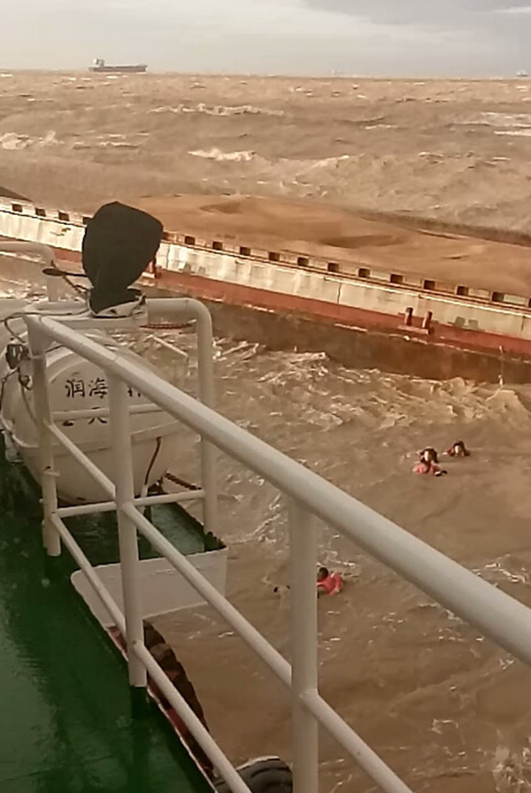8月15日18:10,“润海241”轮将遇险4人救至船上。