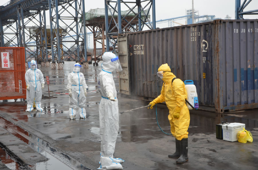 广西北部湾国际港务集团严格落实港口码头、闸口、办公场所三码联查(健康码、行程码和新冠疫苗接种记录)等日常防护工作。聚焦国际航行船舶疫情防控工作,重点做好高风险岗位作业人员闭环封闭管理,提升进口干杂货物作业人员防护等级,落实人物同防。