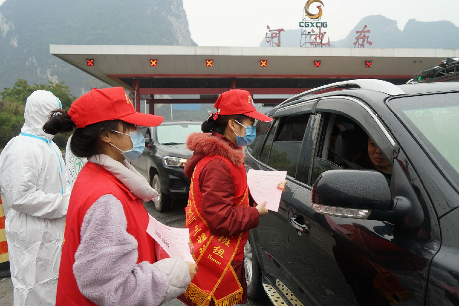 强化宣传开展志愿服务凝聚合力。广西国资国企通过LED播放公益广告154万次,张贴疫情防控宣传海报1.3万张。广西交通投资集团第一时间通过高速公路电子显示屏、可变情报板等方式加强疫情防控信息、交通管控措施发布,累计在1248块电子显示屏和可变情报板发布疫情提示信息4240条,远程交通诱导信息2419条及路况信息2824条,有效引导车辆远端分流。在各收费站、服务区悬挂疫情防控宣传横幅1624条,张贴海报4110张,通过语音广播、自助查询机等载体循环播放疫情防控知识,不断增强群众自我防控意识,提升政策法规知晓率。企业发挥“交投先锋+志愿服务”品牌作用,组织党员志愿者带头作表率,青年志愿者踊跃做贡献,广大职工群众积极参与开展志愿服务;南宁运营公司“凤娟标杆团队”、柳州运营公司“树湘班组”、河池运营公司“三姐班组”等班组,以及红城高速青年志愿服务队等19支志愿者服务队共3500多名党员、团员、志愿者驻守155个收费站出入口防疫检查站,协助开展疫情联防联控和志愿服务工作,提醒过往司乘提前准备好行程码和健康码,确保车辆应检尽检,及时解决疫情防控时期和低温天气中群众出行困难。以“情满旅途”志愿服务活动为载体,联合各辖区交警、路政等部门在收费站、服务区开展志愿服务活动237场次,为过往司乘提供防疫宣传、暖心茶水、行车咨询等志愿服务,累计发放疫情防控和安全出行宣传单65100余份,助力广大司乘安全出行。