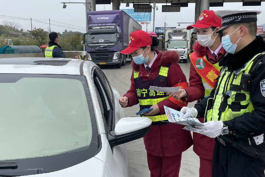 筑牢疫情防控“防火墙”。广西交通投资集团及早部署抓紧抓实各项防控措施,第一时间对百色市阳性病例途径的伶俐服务区、德保收费站、田阳停车区采取封控、消杀及全员核酸检测排查等工作,及时消除风险隐患。调配人员强化一线力量,协助各地疫情防控指挥部在155个收费站出入口设置防疫检查站,开启全部车道供车辆通行,提醒过往车辆提前准备好行程卡和健康码,协助检查站加快查验速度,减少收费站车流人流聚集,降低疫情传播风险。