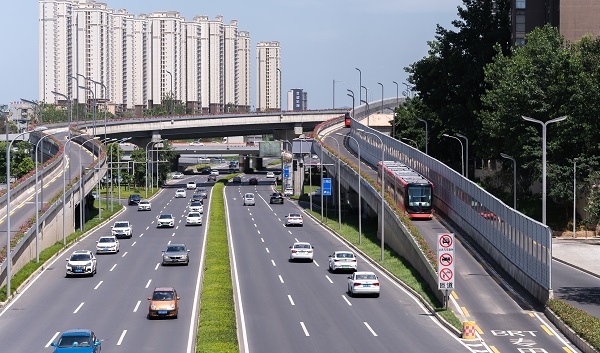 智轨快运系统是我国自主研发的“虚拟轨道跟随控制”技术,以车载传感器识别路面虚拟轨道,通过中央控制单元指令,精准控制列车在既定虚拟轨迹行驶。智轨电车以胶轮取代钢轮,无需铺设有形轨道,最小转弯半径仅15米,与12米公交客车相当,可在城市道路上灵活行驶,具有良好的城市适应性。可实现与城市交通信号实时联动,兼容城市公交卡基础上支持移动支付、人脸识别等功能,确保市民安全、舒适、快捷、准点的出行体验。