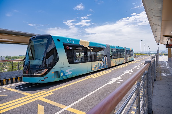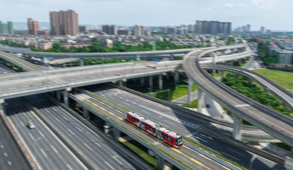 7月4日,由蜀道集团投资运营的“蜀都号”“天府号”智轨列车在成都首次亮相,正式载客试跑,向成都市民直观展示智轨优质运营服务,推动智轨列入成都市低运量轨道交通建设规划。