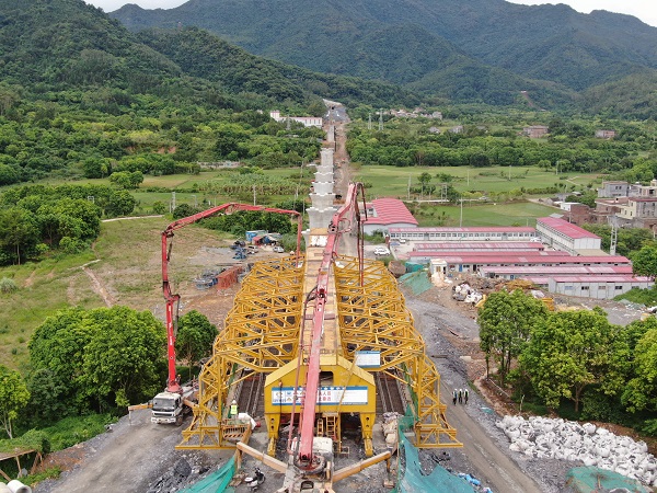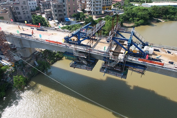 广珠广茂联络线共有4座混凝土连续梁,全长237.5米、主跨112米,将串联起广茂铁路、广珠铁路,是保障广茂铁路外迁和广湛高铁施工的关键性工程。