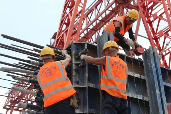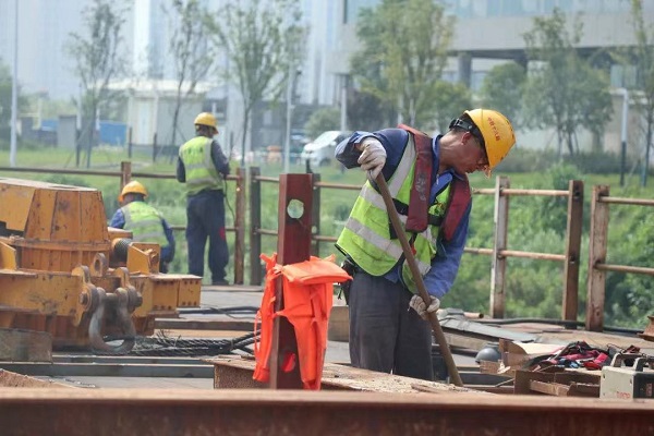 在宜春市袁山二桥项目施工现场,机器轰鸣声、金属撞击声与袁河的流水声交织成一曲美妙的奋斗乐章,工人们挥汗如雨,忙碌在各自的工作岗位上,钢栈桥拼装、钢筋笼制作、桩基施工、雨污水管道施工,各个环节有序进行,项目建设全速推进。