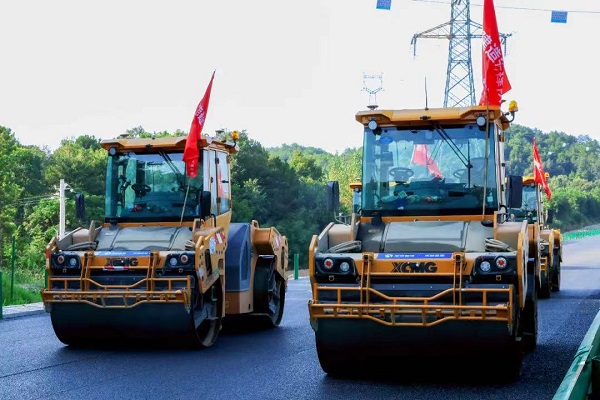 机器轰鸣,一条平整的沥青路面不断向前延伸……近日,在湖北交投集团投资建设的武红高速二期路面沥青摊铺现场,1台摊铺机、5台双钢轮压路机组成的无人智能化摊铺碾压机群正井然有序地施工。