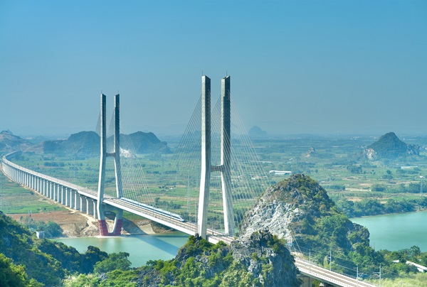 跨越山河,向东驰骋。2024年12月30日,载着广西人民热烈期盼的复兴号列车从玉林北站驶出,以350公里的时速向南宁东站飞驰,南珠高铁南玉段正式开通运营,标志着玉林市正式接入高铁网络,南宁至玉林的铁路运行时间将由1小时44分缩短至50分钟左右。广西14个设区市全部实现“市市通高铁”,成为我国西部地区、全国少数民族自治区中首个实现“市市通高铁”的省区,高铁营业里程突破2400公里,达2405公里,居全国各省区前列。