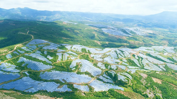 青山绿水间,光伏板在阳光下熠熠生辉,“大风车”不分昼夜旋转,源源不断的清洁能源照亮一地产业、富裕一方百姓。