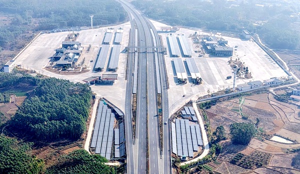 该项目位于广西壮族自治区大塘至浦北段高速公路,全长约127公里。项目充分盘活沿线服务区车棚及屋面、边坡、互通匝道圈空地、隧道出入口中央分隔带、管理场站等闲置用地,建设分布式光伏45.41MWp;沿线服务区、隧道等主要用能场景配套储能设施2.2MW/4.73MWh,打造“光伏+储能+微电网”系统,基本实现绿电覆盖,有效降低高速公路运营期用电成本。