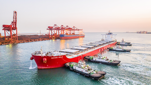 日照港二公司面对船舶密集到港挑战,创新实施“计划源头优化、生产组织提效、口岸特色服务” 协同机制。通过精准制定作业计划,提升单班船舶装卸量刷新历史纪录。在船舶靠泊作业现场,口岸管理部门工作人员提前到达码头前沿,实施“人等船、船到即检”特色服务,在船舶手续办理流程中分秒必争,全力压缩非生产性停时,让船舶装卸效率赢在起跑线上。