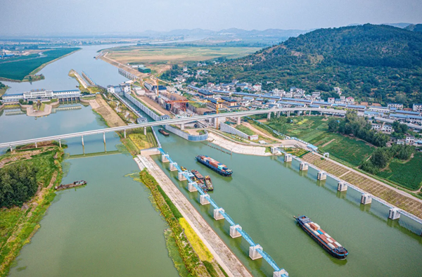 水路运输“通江达海”。安徽正式形成“双通道达海、两运河入江、河江海联运”水运发展新格局。截至目前,全省内河航道通航里程5809公里,其中四级及以上航道里程2313公里;生产性泊位码头881个,其中万吨级以上泊位26个,芜湖、马鞍山、池州、铜陵4港年吞吐量超亿吨。2023年8月,江淮运河全线通航,成为国家“四纵四横”高等级航道网“纵二”的重要组成部分,今年上半年江淮运河通行船只累计超10万艘次。通过江淮运河,安徽实现江河海联运。积极打造远洋运输船队,“黄鹄”号、“鲲鹏”号、“凤凰”号,先后首航地中海和西北欧方向航线,助力“皖车出海”。