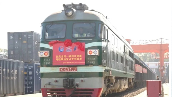 11月26日,“安庆北站—福州江阴港”海铁联运定点专列正式首发。专列满载48个40英尺集装箱货物,跨越千里抵达福州江阴港后,将高效衔接对台海运班轮,实现货物的快速中转。福州港海铁联运首次直达安徽腹地市场,为贯通陆海通道、深化区域协作迈出坚实步伐。