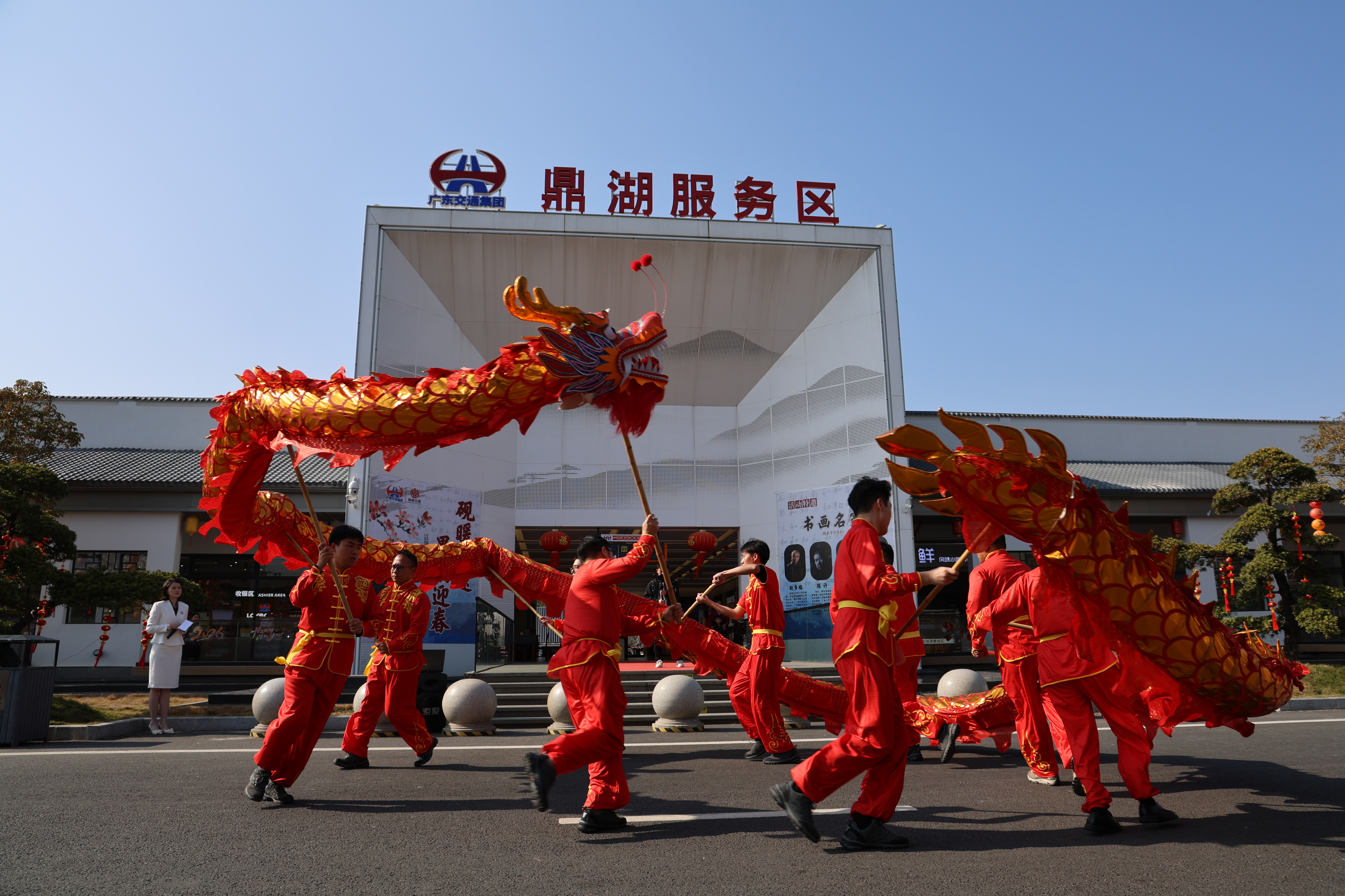 江肇高速鼎湖服务区舞龙表演。