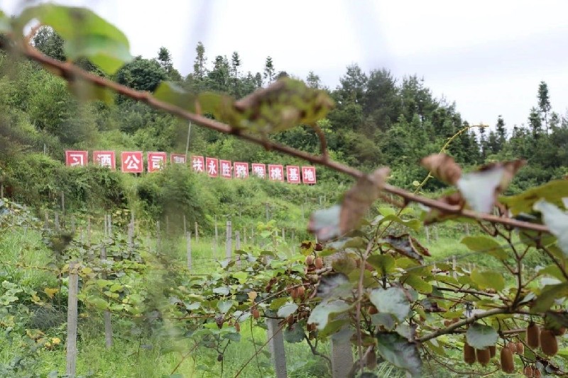 “习酒公司帮扶永胜猕猴桃基地里的猕猴桃挂果啦!”刚到贵州省遵义市习水县永胜村,村支书曾德军就兴奋地说。