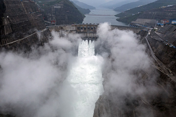 投产发电中的白鹤滩水电站(无人机照片)。新华社记者 江文耀 摄