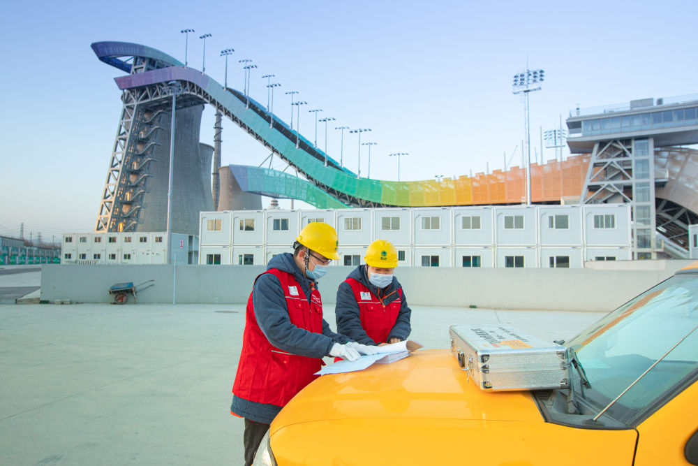 国网北京电力员工在首钢滑雪大跳台现场工作。(国家电网供图)