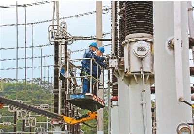 南方电网广西玉林供电局玉林站玉茂I线是“西电东送”的南部通道主干道之一,为粤港澳大湾区和地方经济社会快速发展提供了电力动能。图为电力工人正在对玉茂I线进行春季大检修,进一步提升线路供电可靠性。