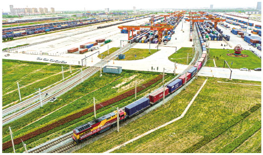 四月二十二日,陕西西安首趟中老铁路(西安至万象)国际货运列车从西安国际港站发车。 新华社发(刘翔摄)