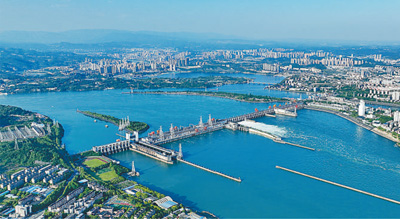 葛洲坝水利枢纽被誉为“万里长江第一坝”。1988年12月全部机组投产发电,总装机容量273.5万千瓦,年均发电量157亿千瓦时。