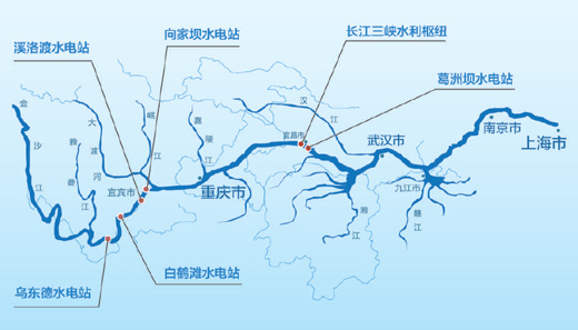 绿色电力,助力实现碳达峰碳中和目标。6座梯级电站,总装机容量约占全国水电装机容量的1/5,发电总量大,调峰能力强,能有效缓解华中、华东地区及川、滇、粤等地的用电紧张局面,为实施“西电东送”提供有力支撑。